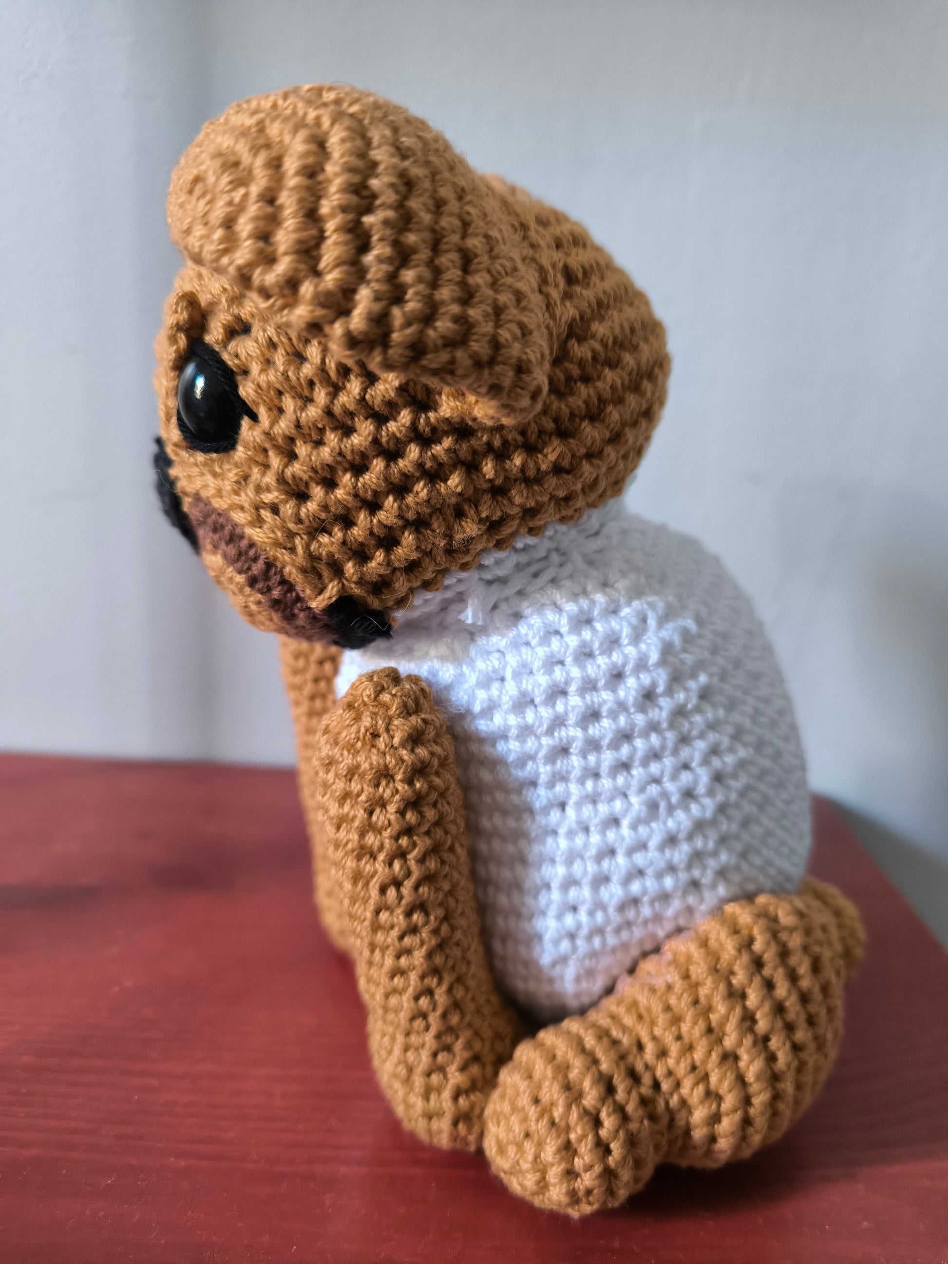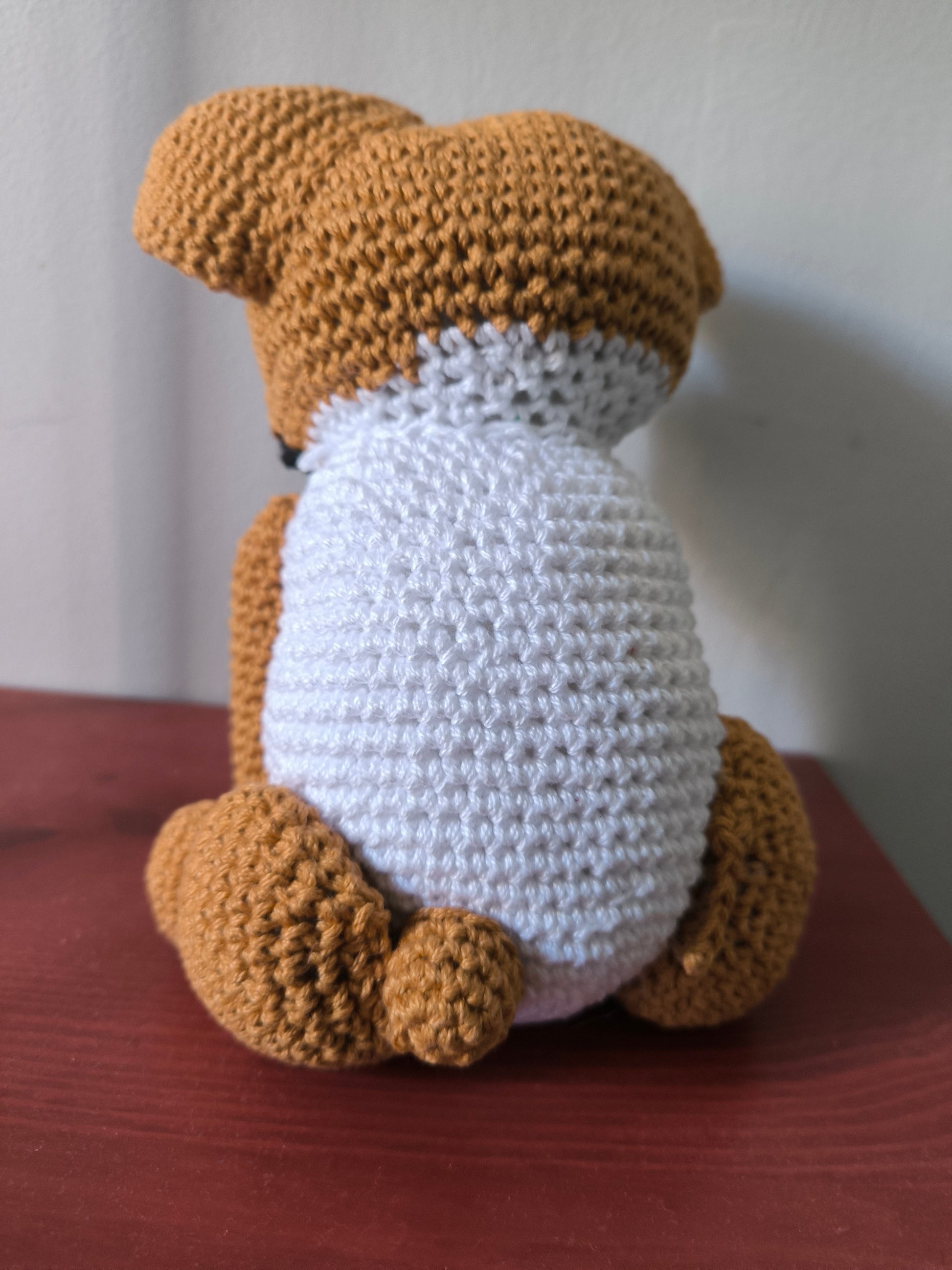 Découvrez cet adorable bouledogue français au crochet, une création artisanale unique entièrement faite à la main.